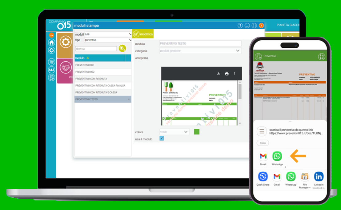 monitora i preventivi da sistema, e invia per email o condividi su whatsapp